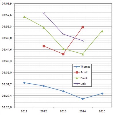 | Nach einem Ruhetag am Sa., den 14. bin ich dann wieder mit Thomas, Armin und René gefahren. Ein wenig hat es noch etwas gezwickt im Knie, doch ging es von Tag zu Tag besser und wir haben fleißig Höhenmeter gesammelt. Da war zum einen eine kurze Tour zum Cap Formentor. Die Strecke ist komplett neu geteert und es rollt endlich ganz wunderbar die 40km hin & zurück, wenn da nicht die rund 1.000HM wären. Und dann ging es natürlich wieder nach S'Arenal zur Strandpromenade zum "Aladin". Eigentlich eine Dönerbude, aber in der Nebensaison gibt es dort den besten Kuchen auf der Insel. Unvergessen bleibt mir auch die Ausfahrt nach Cala Figuera, ganz im Süden der Insel. Zunächst ging es hinauf zum Kloster San Salvador: Die 4.8km habe ich in 15:45min bei durchschnittlich 311Watt absolviert. Bin ein wenig zu optimistisch angegangen, mein Kopf hat noch nicht ganz akzeptiert, daß die Zeiten wo ich 400Watt über eine längere Zeit treten konnte endgültig vorbei sind. In Felanitx haben wir dann nochmal die Trinkflaschen aufgefüllt und dann ging es ab in Richtung Südzipfel der Insel. In Cala Figuera haben wir dann einen weiteren Halt in einer idyllischen Bucht gemacht, wo es Cafe und Kuchen gab. Bis dahin hatten wir schon einen 30er Schnitt vorgelegt, doch das sollte sich bis zum Ende der insgesamt 165km langen Ausfahrt noch ändern. Thomas hatte stark auf's Tempo gedrückt und wir sind in Einerreihe zumeist mit rund 40km/h auf der Uhr in Richtung Alcúdia gerast. Am Ende hatten wir fast einen 33er Schnitt auf der gesamten Tagestour geschafft. |