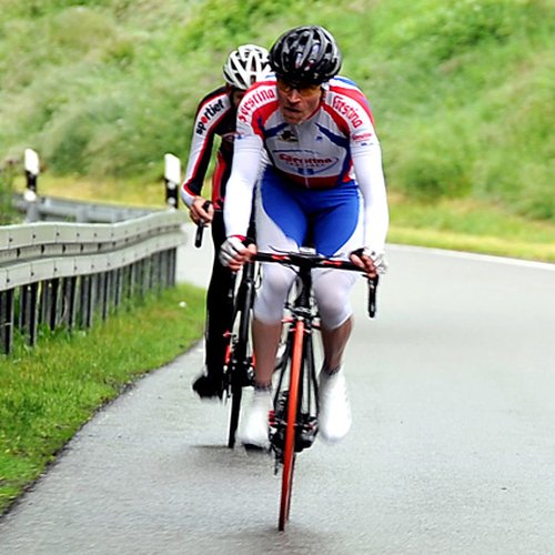 | TdK: 4. Etappe BzF - mit Martin warmfahren | ... und los gehts 16km hinauf zum Dobratsch | ... und ebenso für Thomas wird's ernst! |