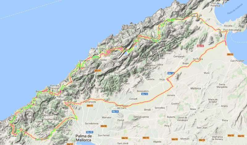 | Die Höhenprofile habe ich der Webseite des Veranstalters entnommen  . Insgesamt galt es ca. 480km und ca. 8.200HM im Renntempo zu absolvieren.