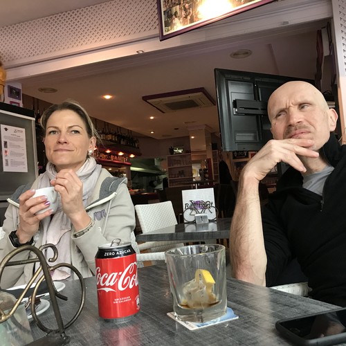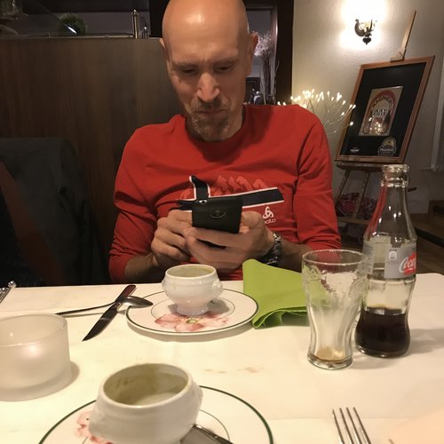 | Homburg: Streckeninspektion mit René | und beim Abendessen ... | mit Armin (Smartphone immer am Mann) |