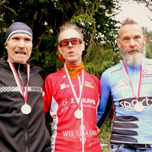 | Schotten: Podium Sen III mit Alberto & Frank | ... und nur mit Frank Erk | Sen II mit Armin (li), Cosmas & Christian (re) |