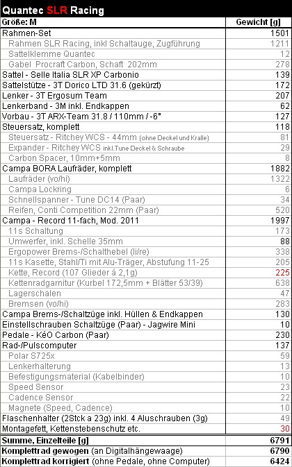 | *Gewichtsangaben in ROT markiert sind geschätzte Werte |